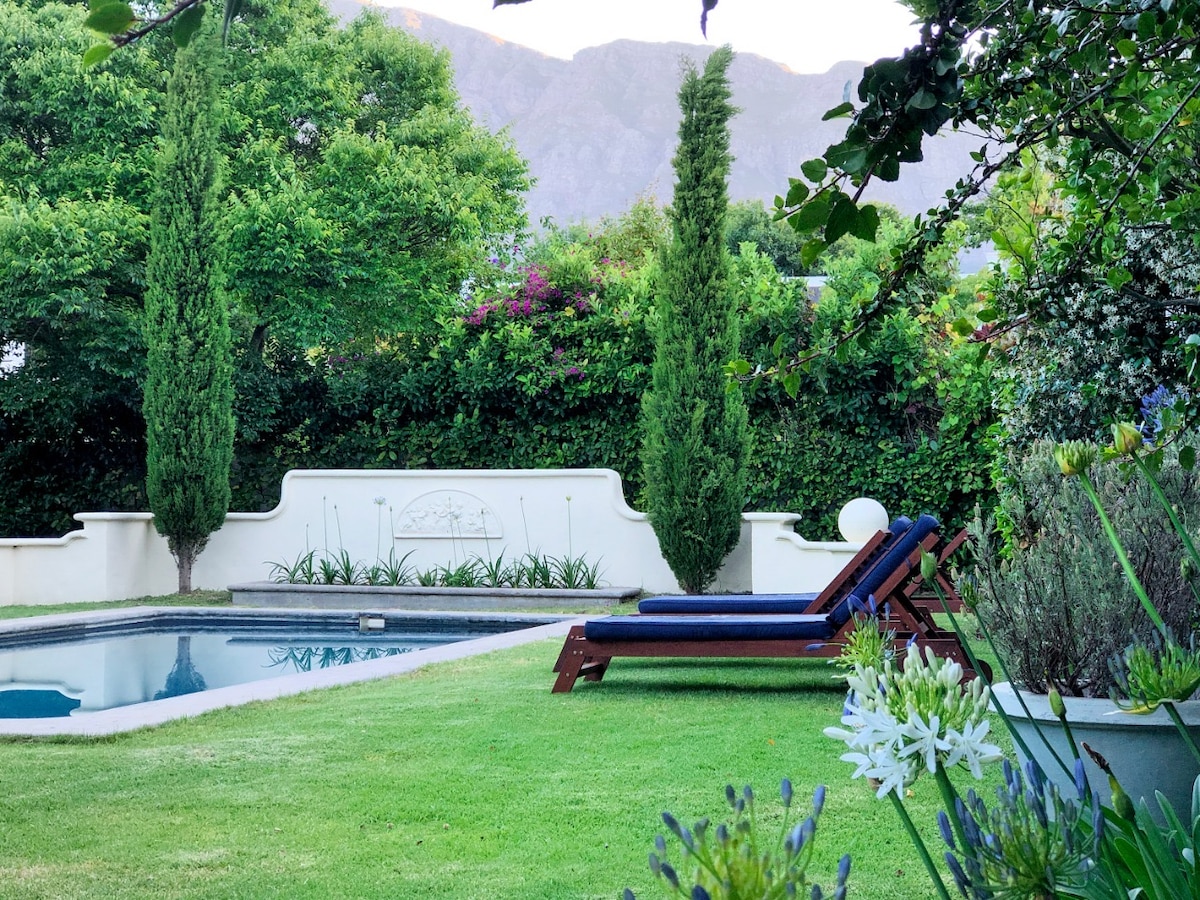 Tugela blends a collection of Botanical, wildlife and bird prints, bamboo and open-beam ceilings, woven African baskets, grass-lamp chandeliers, colourful Indian cotton bedspreads and cushions, with bright walls and textured wall paper to give this home a wonderfully relaxed, yet sophisticated, feel. Large garden with swimming pool and expansive views of the surrounding mountains. Secluded and serene. A family sanctuary in the heart of Franschhoek.