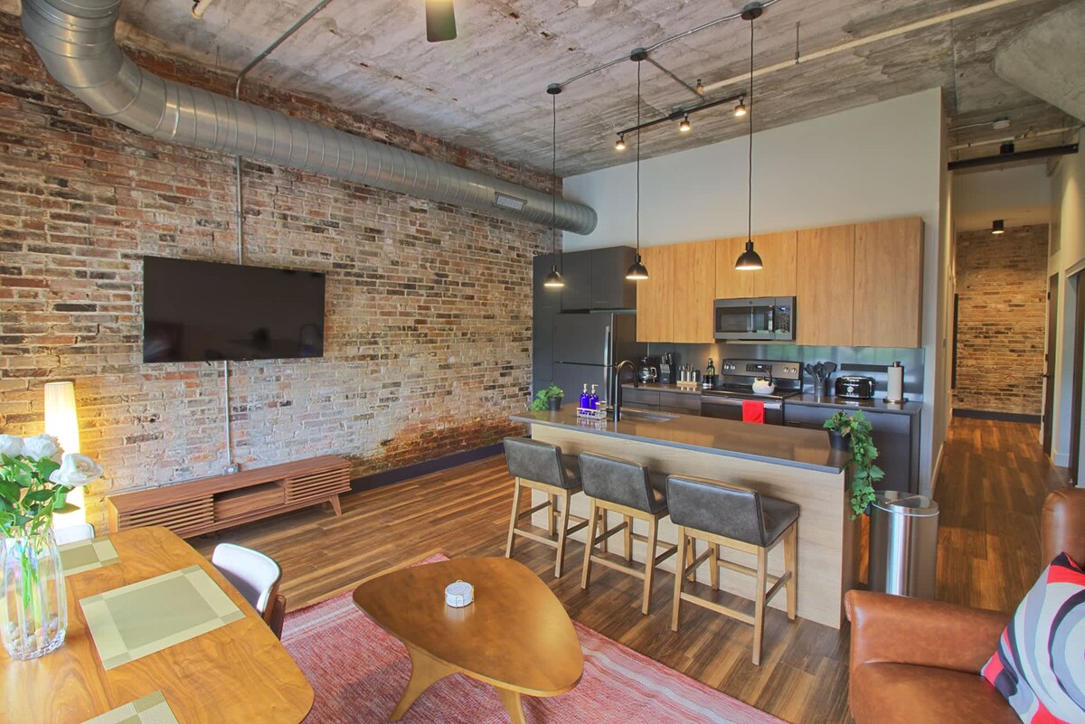 Nash Loft je predivan studio loft sa 12’ plafonima, potpuno opremljena kuhinja sa crnim nerđajućim uređajima i kvarcnim radnim površinama, mašinom za pranje veša koja se može složiti i sušilica, dizajnersko kupatilo sa crnim nerđajućim instalacijama i staklenim tušem bez okvira, udobnim radnim prostorom sa brzom internet konekcijom i dvorištem zajednice Edison-illuminis. Smješteni uz čuvenu ulicu Locust u srcu Midtowna, bićete na korak od slu, Vels Farga, BJC-a i Grouva.
