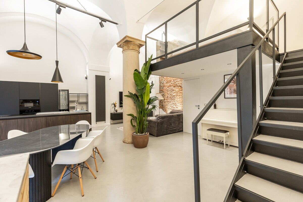Šarmantno potkrovlje nalazi se u srcu grada Bolonje sa predivnim pogledom na Pjacu Santo Stefano (Bazilika sedam crkava). Ekskluzivno mirno mesto gde se savremeni i istorijski nameštaj kombinuju u predivan OTVORENI SpACE. Potkrovlje ima svu udobnost i luksuz. To je 5 minuta hoda od Piazza Maggiore, glavni trg, 2 minuta od Two Towers i od tha mnogi barovi i resturants. Nalazi se unutar ograničenog saobraćaja aerea (ZTL). i u pešačkoj zoni