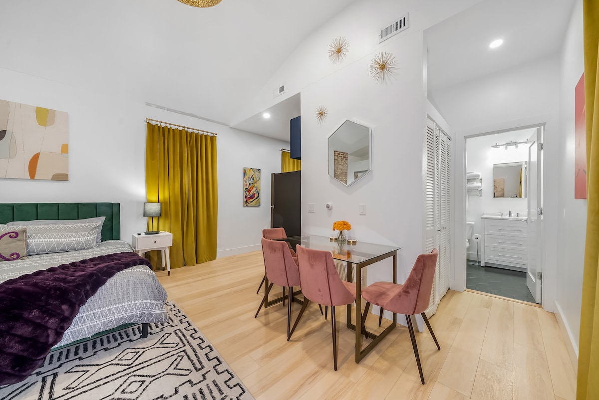 Naš studio Little Boho na najvišem spratu mirnog kompleksa 4 kompleksa je vrhunska moderna udobnost! Svaki detalj je dizajniran imajući u vidu luksuz, uključujući prilagođenu kuhinju i kupatilo, baršunastu draperiju i finu završnu obradu. Opustite se u stilu uz plišani bračni krevet, veliki kauč za spavanje, dobro opremljenu kuhinju, W/D, unutrašnje dvorište i privatni parking. Smješteni smo u Maloj Bohemiji, blizu centra grada, CWS-a i zoološkog vrta. Poboljšano čišćenje i samostalna prijava pobrinite se da ste u dobrim rukama. Rezervišite sada za nezaboravan boravak!