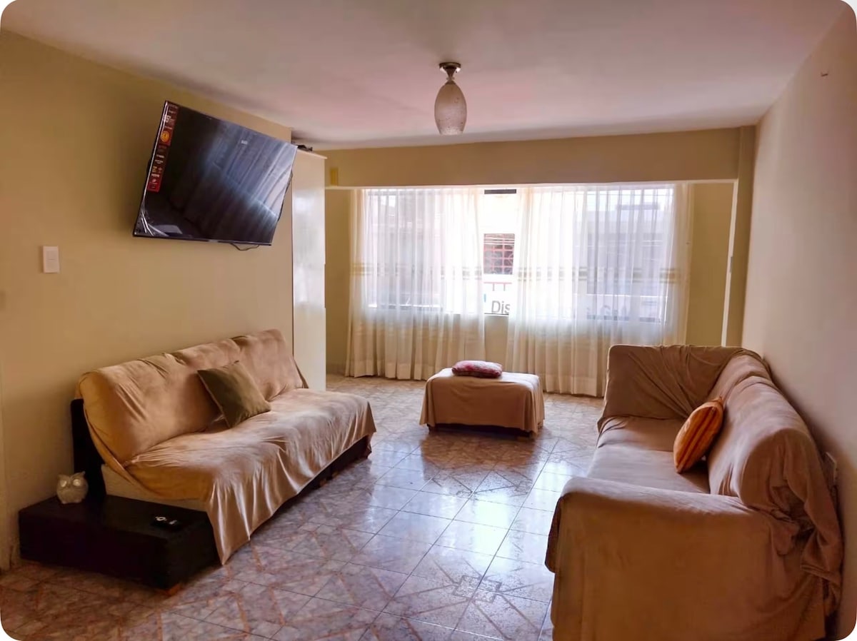 Moderno departamento en primer piso, con acceso fácil y un ambiente acogedor. Perfecto para quienes buscan comodidad, tranquilidad y una estadía relajante. Un espacio práctico y agradable que te hará sentir como en casa desde el primer momento. Servicios: 📶 Wifi 📺 3 televisores de 55” 🍳 Cocina totalmente equipada 🛏️ 3 dormitorios 💄 Tocador de maquillaje con espejo 🚪 Ubicado en primer piso (sin escaleras) 🚿 Agua caliente 🧼 Artículos básicos (jabón, papel higiénico, toallas) 🧺 Lavadora