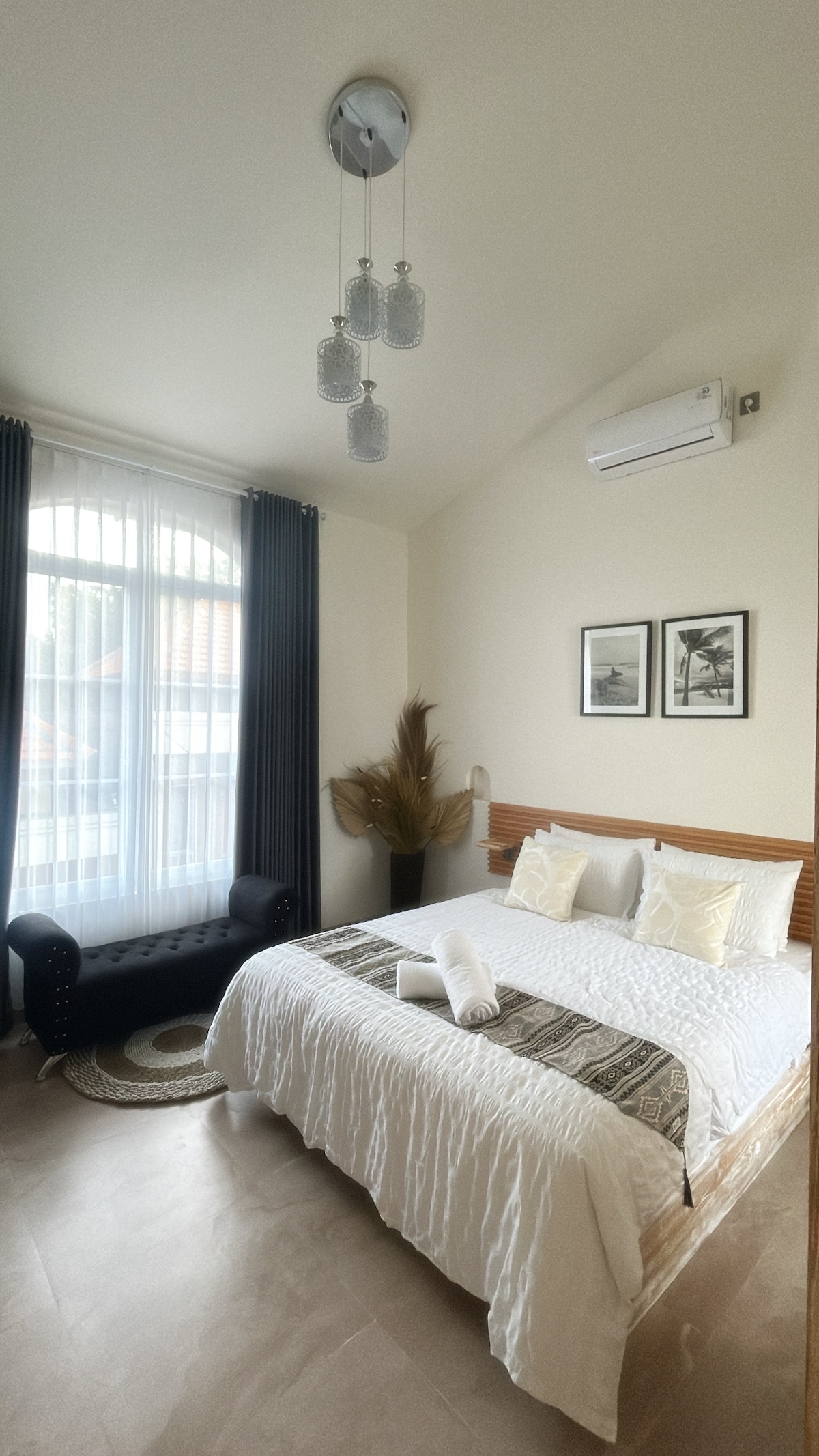 Fall asleep to the sound of waves below the cliff and wake to uninterrupted ocean blue. This one-bedroom apartment sits between the cliff edge and Padang-Padang Beach, with the sea filling the room through a wide glass window and balcony opening. Made for couples who want privacy, surf energy, and a calm place to retreat after the beach.