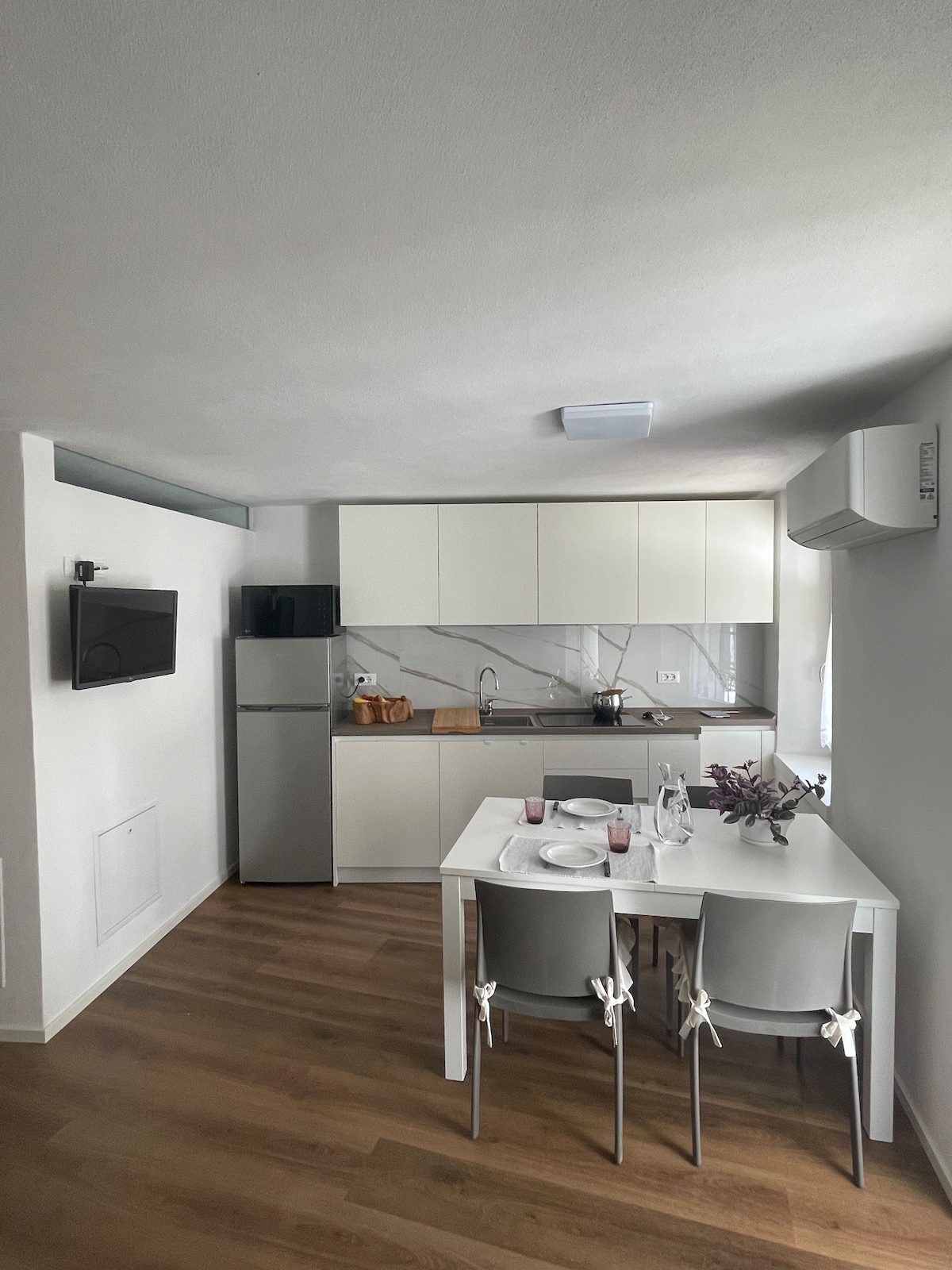 Newly renovated studio apartment, furnished with taste and attention for details. The flat is located in a portion of our family house, in the center of a historic village close to olive trees, places for climber and Arco. Lake Garda is just a few km away. Also convenient as support for the Eremo nursing home, reachable by foot in 2 minutes.