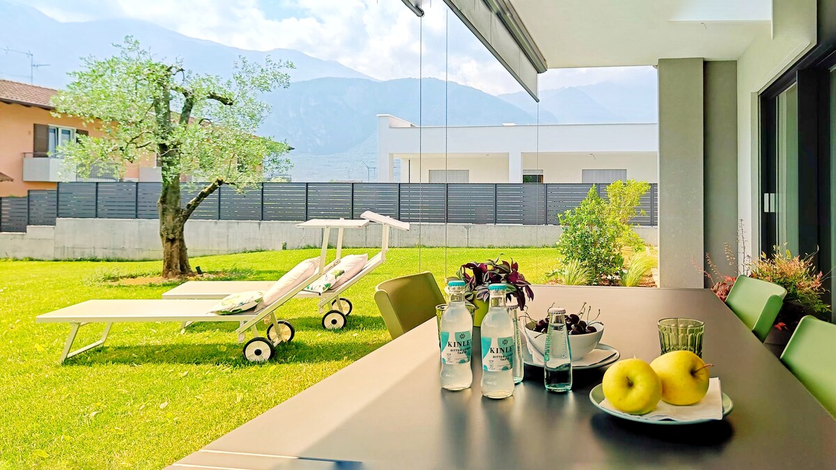 L'appartamento moderno e accogliente con parcheggio privato recintato gratuito, garage per bici e attrezzatura e ampio giardino con bbq e gazebo. Situato al 2° piano con ingresso autonomo, camera con 3 posti letto, open-space con cucina e soggiorno con divano letto matrimoniale, bagno finestrato con doccia walk-in e ampio balcone vista montagne. Attrezzato di lavastoviglie, lavatrice, macchina Nespresso, Wi-Fi e Smart TV. Ospita fino a 5 persone.