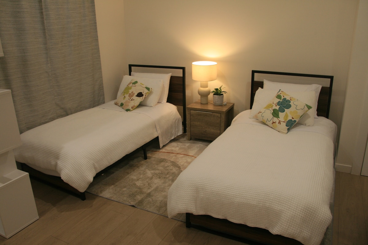 Moderan i privatan luksuzni studio otvorenog tipa na mirnom stambenom putu koji se može pohvaliti apsolutnom privatnošću. Dok je pričvršćen za glavnu kuću, studio se nalazi na zasebnom spratu sa sopstvenim privatnim pristupom bez zajedničkih prostorija. Sa prostranim privatnim kupatilom, bračnim krevetom, kuhinjom i spoljašnjim prostorom, savršeno je prebivalište za parove ili pojedince. Pored toga, na našem putu ima dovoljno besplatnog parkinga ako vozite.