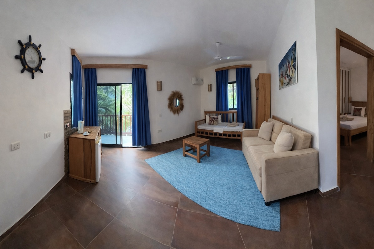 Stanovi Deluxe su samo nekoliko koraka udaljeni od Indijskog okeana! Stan u prizemlju Šira sa 2 spavaće sobe i spojenim apartmanima, potpuno opremljenom kuhinjom, trpezarijom i dnevnim prostorom. Smešten u Jambani Mfambviju sa najlepšom tirkiznom vodom koju ste ikada videli. Ima televizor ravnog ekrana sa pristupom Netflix-u, klimatizovane sobe, brz Wi-Fi, dnevno održavanje domaćinstva, privatni parking, terasu i bezbednost, bezbednosnu kutiju, peglu i daske, fen za kosu. Ne postoji ovakvo mesto u celom Zanzibaru!