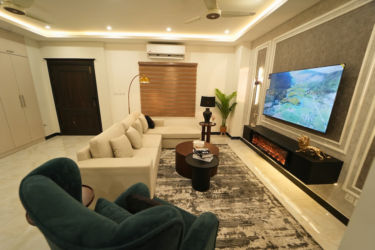 Welcome to our stylish two-bedroom suites in DHA 5 Islamabad. Enjoy the convenience of a quick commute and relax in a space featuring lovely decor and a fully-equipped home theater. Ideal for travelers seeking comfort and entertainment, this cozy retreat offers modern amenities in a prime location. It is a complete separate portion with it own separate entry and parking, family friendly, therefore very secure and peaceful. Parties & loud music is not allowed. Unmarried couples not allowed.