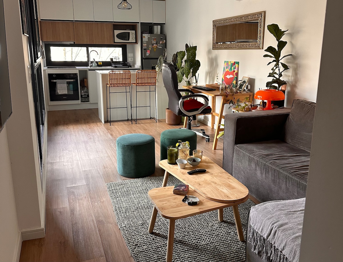 Modern 1-bedroom apartment in Parque Rodó. Bright and quiet, with large double-glass windows. Fully equipped kitchen with fridge, oven, microwave, utensils and tableware. Open living-dining area with 43" Smart TV and a home office space with Wi-Fi. Bedroom with queen bed and balcony access, plus a full bathroom. Excellent location: steps from Parque Rodó and the Rambla, surrounded by cafés, shops, and public transport at the door.