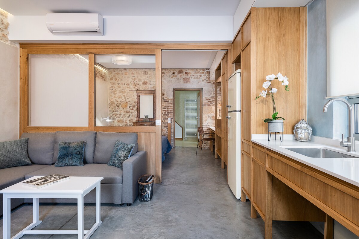 Samo 30 metara od mora i poznate obalne ulice Kum Kapi, sa brojnim kafićima i restoranima, na centralnoj lokaciji u gradu Hanji, potpuno renovirani Koum Kapi Boutique Apartments kombinuju tradicionalnu arhitekturu stare kamene zgrade sa modernim arhitektonskim elementima. Idealno za vaš odmor u Hanji tokom cele godine - ovi apartmani su jedni od retkih koji nude centralno grejanje za prolećne i zimske mesece.