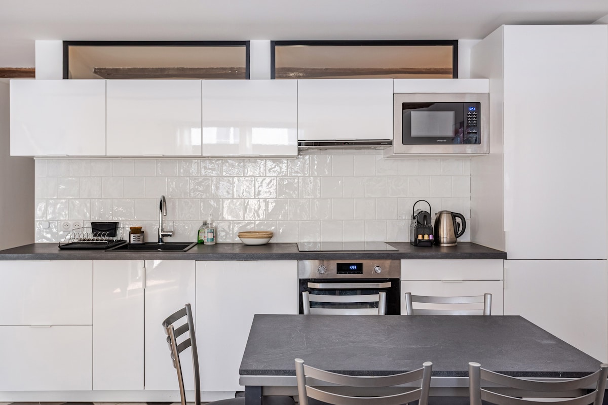 At the ground floor of a 18th century property, on two floors of 85sm, brand new house freshly designed by an interior designer. All the experience was made for a maximum independence and discretion. Private entrance, the house has an american kitchen on living room, a bedroom with view on the street, and a Luxury Parental Suite with private bathroom, tv, fast wifi and mini bar. As a Luxury Countryside House in the very heart of Marais, the « coolest street of Paris » says the new economist.