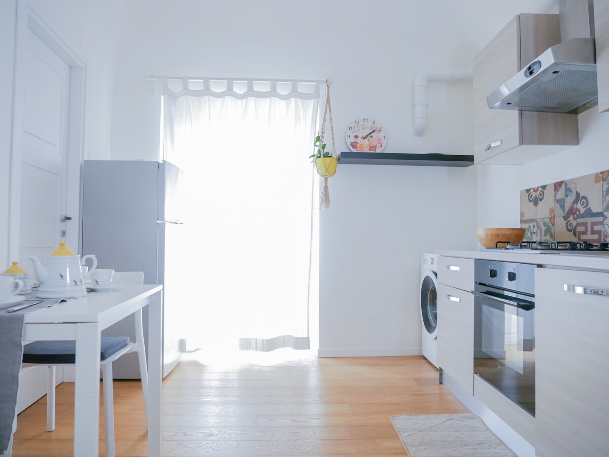 Goditi una vacanza all'insegna dello stile in questo spazio in centro, nel cuore della Città. Posto al secondo piano di un'immobile completamente ristrutturato, con l'attenzione verso l'ambiente per la scelta dei materiali. Minimalista nel rispetto delle dimensioni ( 35 mq) e con elevata attenzione all'igiene. Composto da zona living con divanetto, cucina, camera da letto e bagno. Perfetto per due persone, può ospitare anche un ragazzino sino a 12 anni, sul divanetto/lettino singolo.