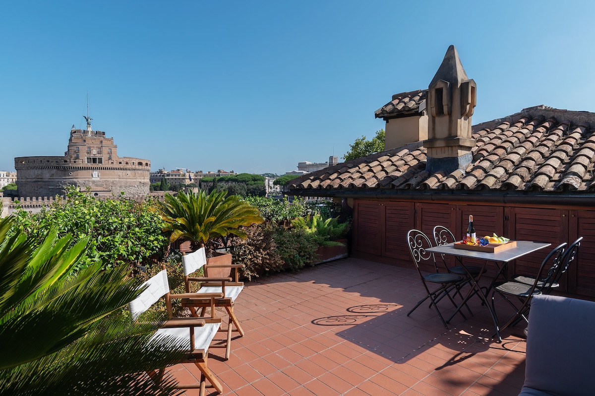 An authentic roman house, totally renovated with passion and love. From its windows you can admire one of the best views in Rome: the Tever river and the wonderful Castel Sant'Angelo. Its private silent terrace is the most romantic place where you can have dinner and breakfast in an authentic roman atmosphere. We can provide guided tours, bike rental, private car parking and private cooking lessons upon request, contact us for more information and price details.