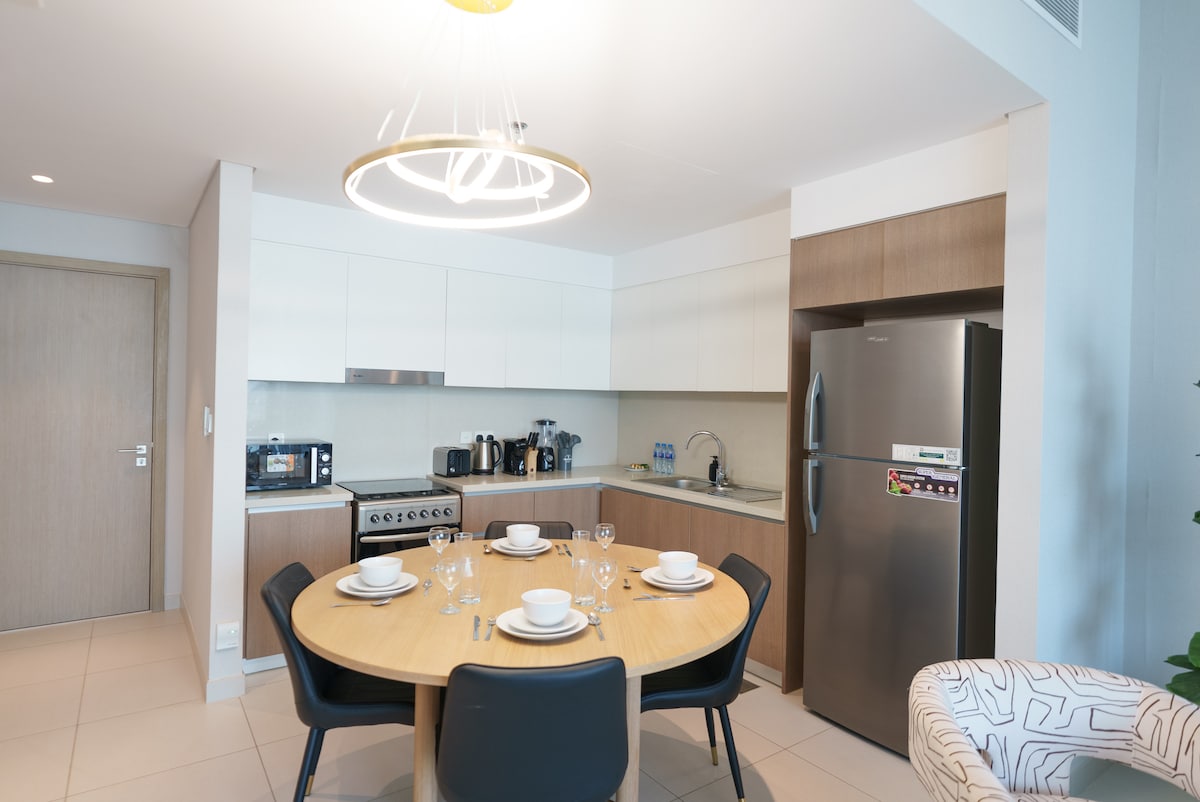 Dobro došli u svoj dom u Mejdanu! Ovaj moderni jednosobni stan u Polo Residenceu udaljen je samo 10–15 minuta od Burdž Kalife i centra Dubaija. Savršen za poslovna putovanja ili razonodu, nudi udobnost i praktičnost. Unutra možete da uživate u bračnom krevetu (dostupan je dodatni dušek), dva kupatila i tehnološkim pogodnostima kao što su pametni TV od 85 inča, PS4 i platforme za strimovanje. Praonica veša je dostupna u Spinneys kompleksu kao dodatna usluga. Brzi Wi-Fi i udobni detalji čine ga odličnom bazom za istraživanje