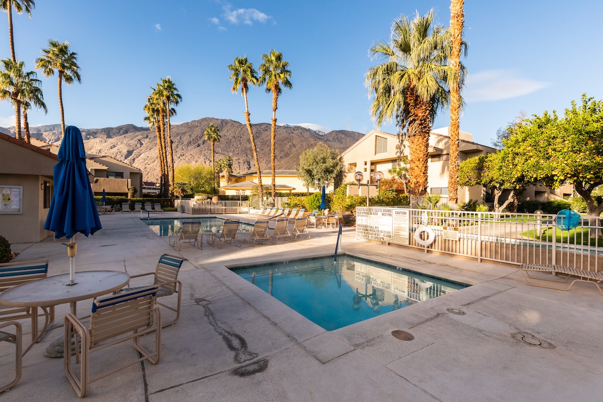 Ova elegantna jedinica se nalazi na najvišem spratu sa fantastičnim pogledom na planine na zapadu. Svi novi podovi, nameštaj, kućni aparati i sveže renovirano kupatilo! Bijaric ima prelep bazen sa grejanjem tokom cele godine i 2 hidromasažne kade. Dva teniska terena sa dva reket i teniskim lopticama. Dva televizora sa Netflix-om i lokalnim kanalima. Udaljeni ste samo dva bloka od Palm Kenjon Drajva, gde ćete naći divne prodavnice, restorane i noćni život. Gradska uprava Palm Springsa ID# 2409