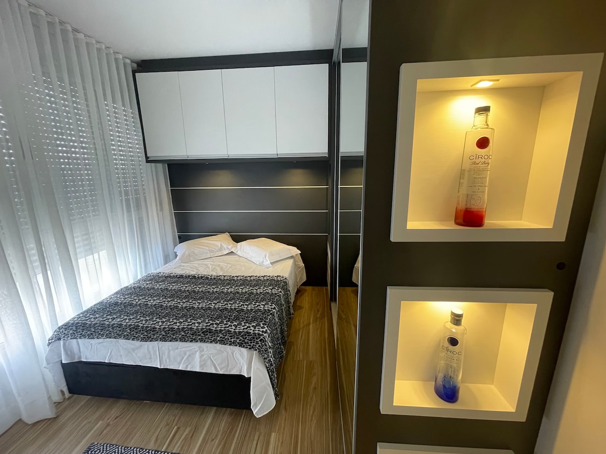 Prekrasan stan sa 2 apartmana + kupatilo, namještaj po mjeri, opremljen klima-uređajem u 2 apartmana i u dnevnoj sobi, Smart TV-om, Wi-Fi mrežom, mašinom za pranje veša i mašinom za sušenje veša, kompletnom kuhinjom. Sve sobe su dobro provetrene. Privatna garaža. Ap je divna i kompletna!! Gosti svih porijekla su dobrodošli. Palmas Bič - u Governador Celso Ramos - SC. Prelijepa, čista plaža. More je pogodno za kupanje. Pristup plaži može da bude peške. Plaža je poželjna lokalcima i turistima.