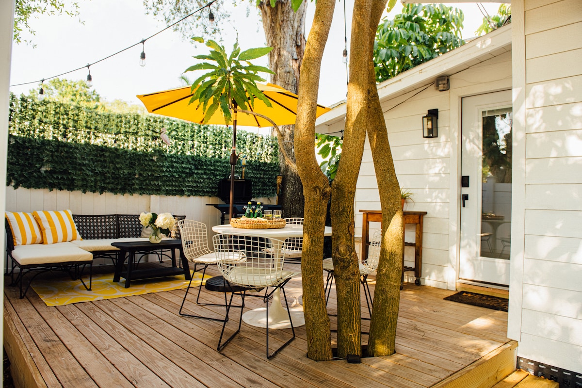 Naš privatni, stari apartman na Floridi koji se nalazi u istorijskom centru Bredentona sa prostranom zadnjom terasom, bračnim krevetom, prostorom za sjedenje, kuhinjom, brzim BESPLATNIM Wi-Fi-jem i parkingom. Prošetajte do obale rijeke gdje ćete uživati u restoranima, kupovini i predivnom pogledu na obalu. Samo nekoliko minuta do ami plaža, prodavnica i beskrajne zabave. Dostupno pješke do lokalnih muzeja, Planetarijuma, IMG-a i drugih lokalnih favorita. Smješten u mirnom dijelu grada, ovaj apartman pruža prijatan i miran boravak.