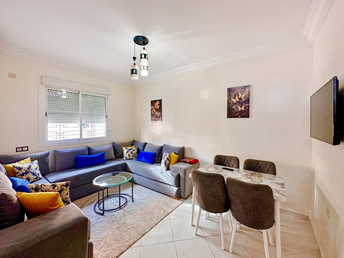 Welcome to your peaceful escape in Marrakech! 🏡 This stylish 2-bedroom smart apartment is a tranquil haven where modern comfort meets the magic of the Red City. 🌅Enjoy mesmerizing sunsets from the balcony. With fast fiber internet, it’s perfect for remote work or streaming 👩💻. 📍Our prime location near Palooza Land gives you easy access to top attractions. It's ideal for solo travelers, couples, or business guests.