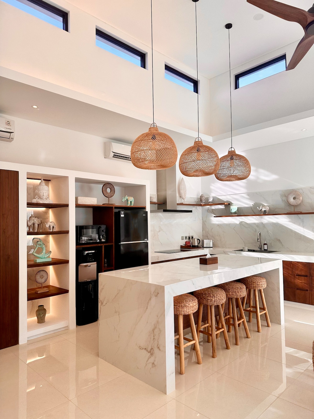 „Dobro došli u našu zadivljujuću luksuznu vilu u Sentul Sitiju, ova predivno dizajnirana vila kombinuje tradicionalnu drvenu arhitekturu sa modernim detaljima, stvarajući jedinstven i zadivljujući ambijent.” Sa tri prostrane spavaće sobe, velikodušnom dnevnom sobom i BESKONAČNIM BAZENOM koji izgleda kao da se proteže u veličanstvenom pogledu na planinu Salak, svako jutarnje plivanje djeluje kao ritual. Ovaj nevjerovatni objekat pruža spokojnu i mirnu atmosferu. [NIJE U PUNCAKU]