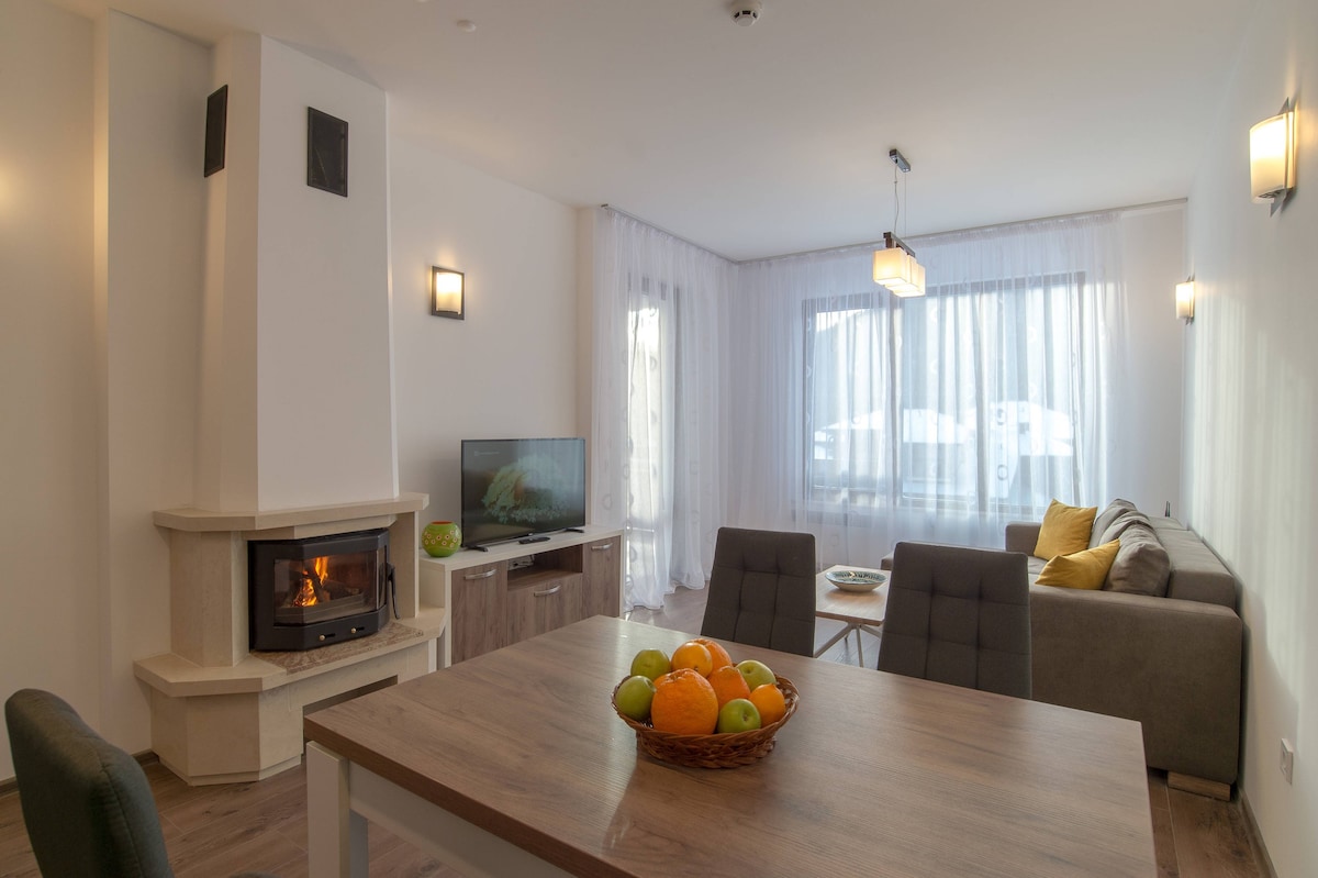 Pažljivo, praktično i uređeno, garsonjera ima sve što vam je potrebno za kompletan odmor -ergonomski antistresni dušek, ortopedski ili visoki jastuci, laganu posteljinu, romantični kamin, moderne uređaje, potpuno opremljenu kuhinju sa trpezarijskim stolom, udoban kauč koji se pretvara u krevet, prostrano kupatilo, brzi internet i pogled na borovu šumu sa balkona! Nalazi se na prvom (ne prizemlju) i ima sopstveni izlaz u baštu! Parking je odmah pored ulaza u zgradu.