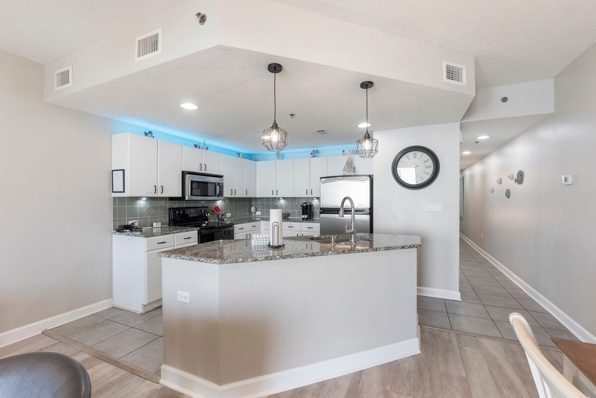 Otkrijte prostrani kondominijum sa 2 spavaće sobe i 2 kupatila na plaži u kompleksu srednjeg nebodera koji je prikladan za porodice. Ovaj skriveni dragulj pruža spektakularan pogled na netaknuti bijeli pijesak Smaragdne obale. Smješten samo nekoliko koraka od raznovrsnih popularnih restorana i samo pola milje od živopisnih prodavnica i zabave u Pjer Parku, to je savršena kombinacija mira i praktičnosti. Novo u ovom području je Top Golf, odmah preko ulice. Uživajte u životu uz plažu sa svim udobnostima doma!