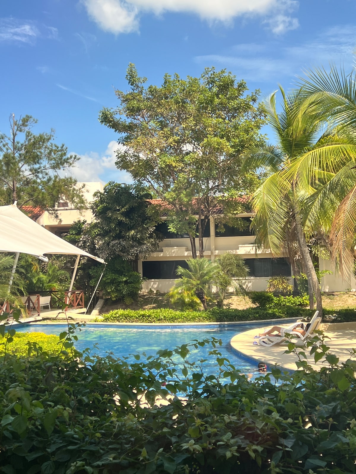 Beachfront vacation! Spectacular sea, sand and pool views from the balconies. Steps to the pool, sand and surf. Two adjacent 1 bedroom / 1 bath hotel studios, each with basic, efficiency kitchens and lockout privacy door. Unit A has 1 large bed and 1 living room pull out couch /bed. Unit B has 2 large beds. Resort style vacation with pools, cabanas, sports bar, restaurants, mini-market and numerous outdoor activities. Playa Caracol is a new, high-end beach resort with miles of white sand.