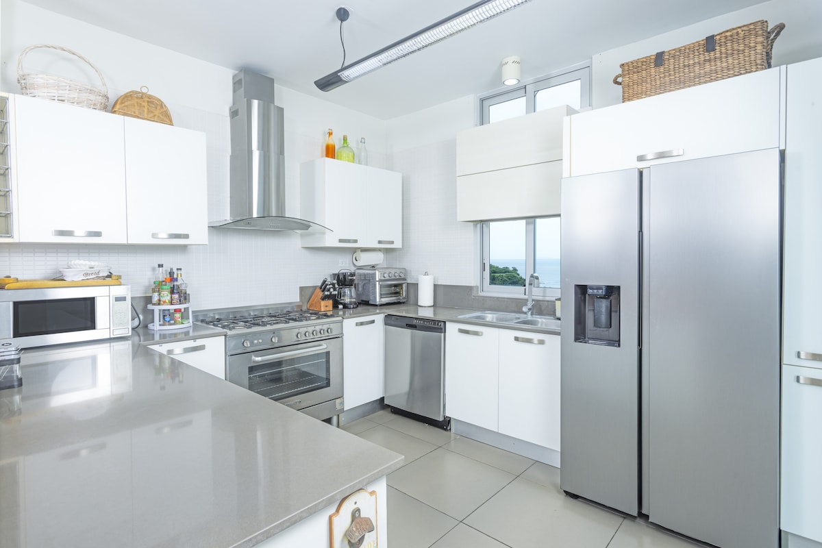 Naš stan nudi pogled na okean koji oduzima dah i odličnu lokaciju. Sa 125 mt2 prostora, enterijer je dizajniran za udobnost i stil, sa potpuno opremljenom kuhinjom i praonicom veša. Opustite se u dnevnoj sobi ili izađite na privatni balkon i uživajte u pogledu. Uživajte u pristupu plaži za laganu šetnju, teretani za ljubitelje fitnesa i sauni. Idite do bazena na krovu gdje možete uživati u panoramskom pogledu. Doživite oličenje života na obali u našem utočištu uz plažu!