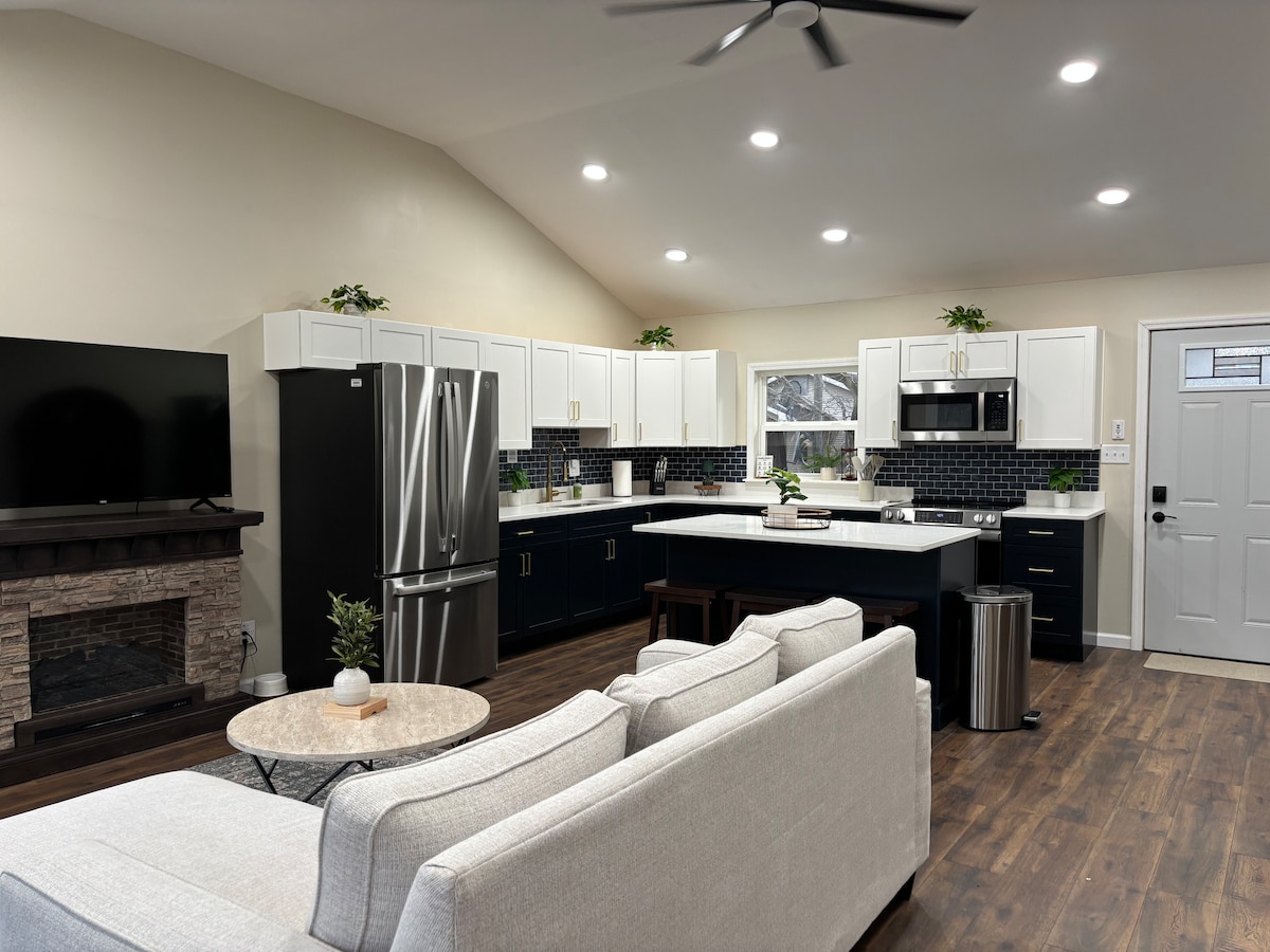 Ovaj dom ima odličan tlocrt za 2-4 osobe sa malim krevetom u potkrovlju za decu. Ima vrhunske kuhinjske potrepštine i mašinu za pranje i sušenje veša u jedinici. Omekšivač vode za odličnu vodu, podove od tvrdog drveta od javora i prednja terasa za roštiljanje na otvorenom. Parking za 3 automobila i šupa sa mnogo sadržaja, uključujući bicikle i viseću ležaljku za rekreaciju i opuštanje. Novo u 2024. godini, novi tepih, zavjese za zamračivanje i solarni paneli! Besplatan punjač za električna vozila za goste!