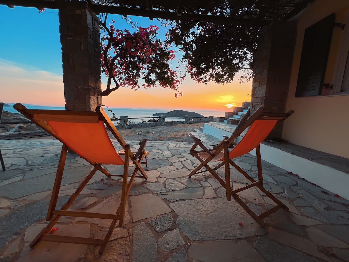 Ova ekološka kuća površine 55 kvadratnih metara nalazi se 18 minuta automobilom od luke Tinos, na zapadnoj strani ostrva, ugnežđena u masliniku i okružena stenovitim pejzažom i pogledom na Egejsko more. Ova tradicionalna seoska kuća redizajnirana je u minimalnom stilu. Prostor je idealan za parove koji vole seoski život i privatnost. Nudi priliku da se opustite od gradskog života i ponovo povežete sa jednostavnošću i spokojem prirode i svesnosti.