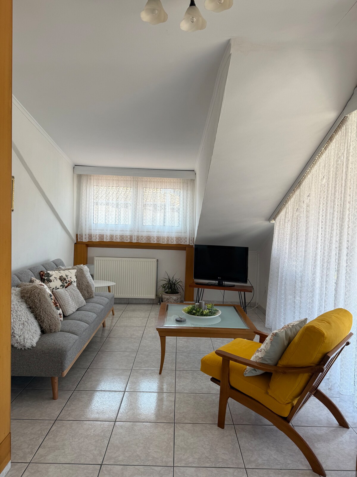 Consists of two rooms, 4 beds with 1 extra bed (190x75cm) (75x30inc), and 1 bathroom. Has a spacious living room, modern equppied kitchen, a bedroom with a double bed and a wardrobe, neat bathroom, and a balcony with a mountain view of Olimp. It includes wifi, satellite tv, and airconditioning that is included in the price. There are numerous shops, cafes and restaurants around the apartment and a supermarket is approximately 800ft (250m) near which makes it super easy to enjoy your stay.