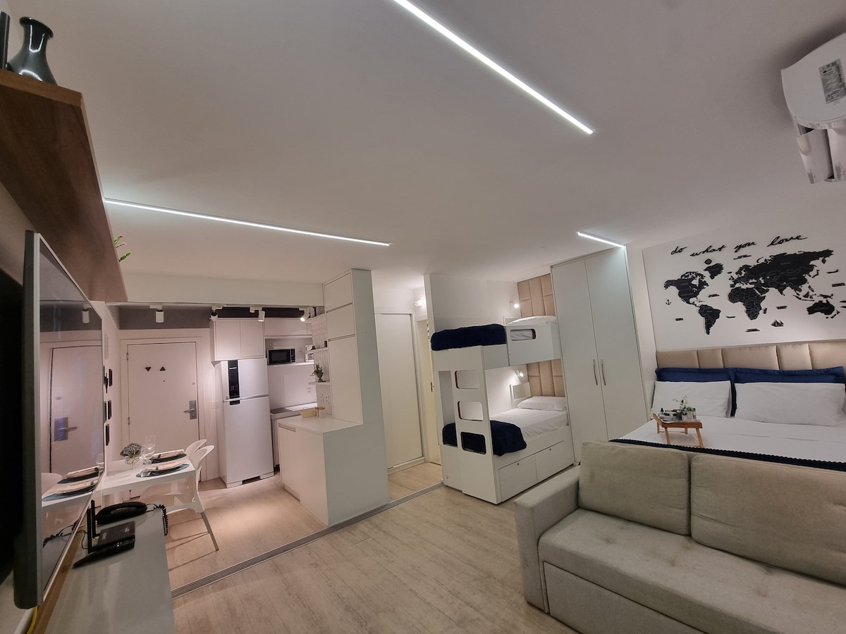 This flat with a lake scenery is ready to make your stay in the capital unforgettable! Situated just 5 minutes from "Esplanada", the apartment offers the perfect balance between centrality and the tranquility of nature by the lake. Additionally, our resort features a range of amenities: two beautiful infinity pools, a jacuzzi, sauna, gym, three coworking spaces, a 24-hour convenience store, 24-hour laundry, and an elegant pier by the lake with a view of the JK Bridge.