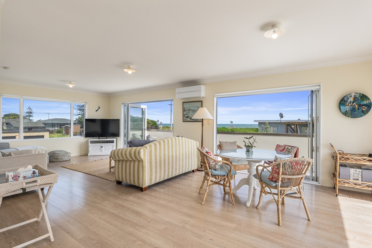 Sun-drenched coastal escape with stunning Kapiti Island views. This spacious second-floor apartment features two bedrooms, two bathrooms, and open-plan living flowing to a large deck—perfect for morning coffee or sunset drinks. Enjoy private beach access, a fully equipped kitchen, linen, Wi-Fi, gas heating, and affinity hot water. Off-street parking for two cars, just a 5-minute walk to Kena Kena shops. Ideal for couples or friends seeking a relaxing retreat.