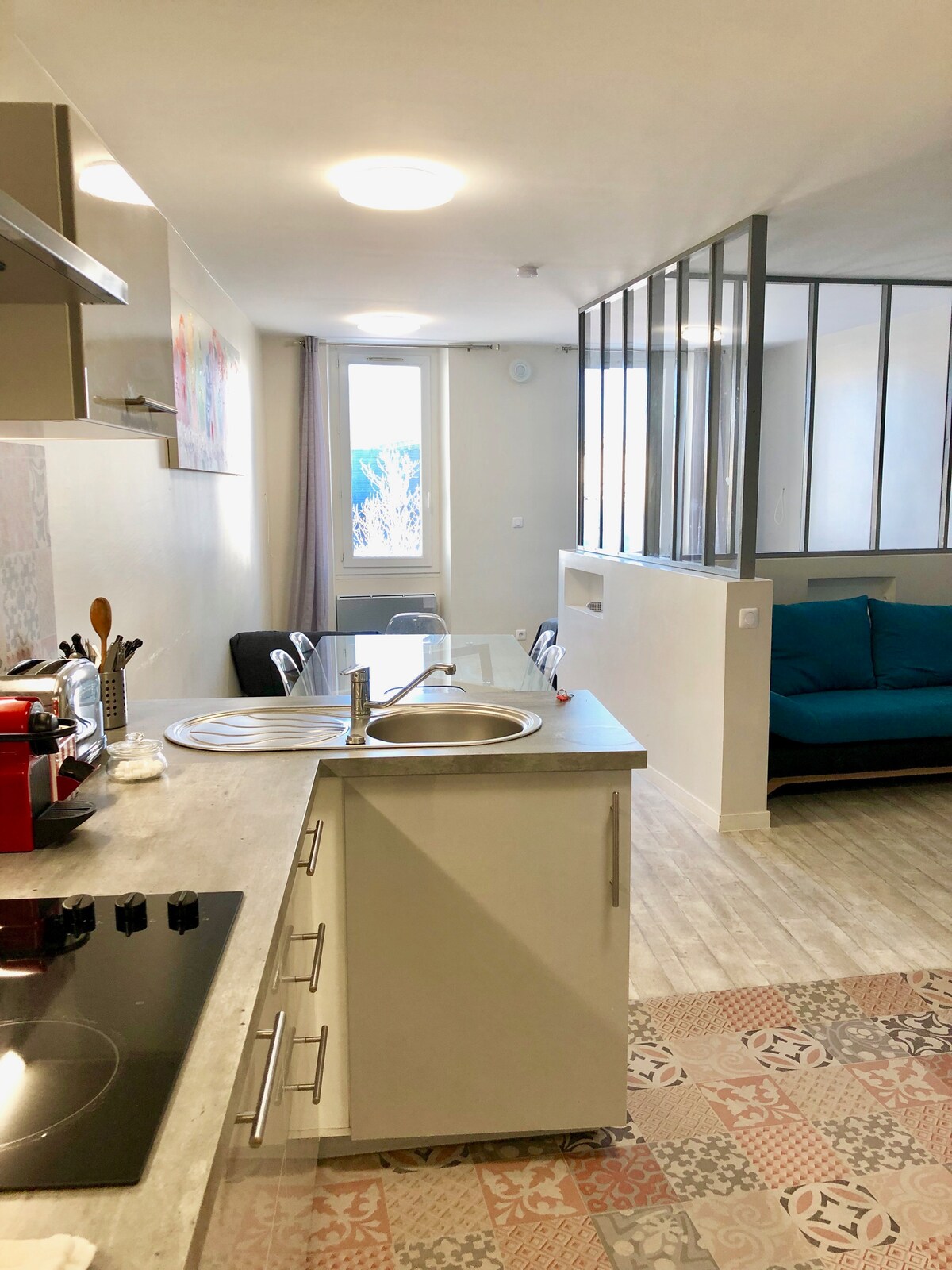 Superbe appartement type loft d'environ 40m2 avec une cuisine intégrée, frigo et machine à laver, wc indépendant, couchage en 160 gd confort et canapé convertible, en surplomb de la plus belle plage de Bandol. Vue mer exceptionnelle, sur la Plage de Renécros, Port et centre ville à pied, place de parking privative avec RECHARGE Electrique voiture, bien neuf.