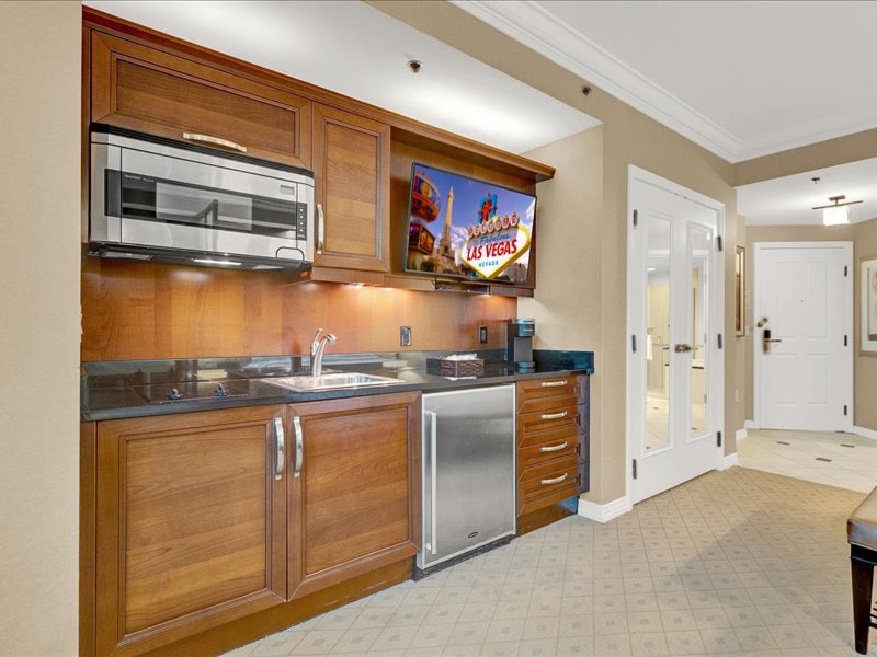 Luksuz po pristupačnoj ceni! Predivan pogled na Las Vegas Strip, Sferu, grad i planine. Garsonjera ima bračni krevet i kauč koji se sklapa na kraljicu. Čajna kuhinja ima uređaje od vuka, Boša i Sub-Zero. Stakleno posuđe, pribor za jelo i tanjiri nisu uključeni. Kupatilo je pečeno sa dva umivaonika, italijanskim mermerom. Velika tuš-kada i hidromasažna kada. Uživajte u Wi-Fi mreži i pristupu bazenu i fitnes centru. Pješice do Stripa i pored tržnog centra Fashion Show.