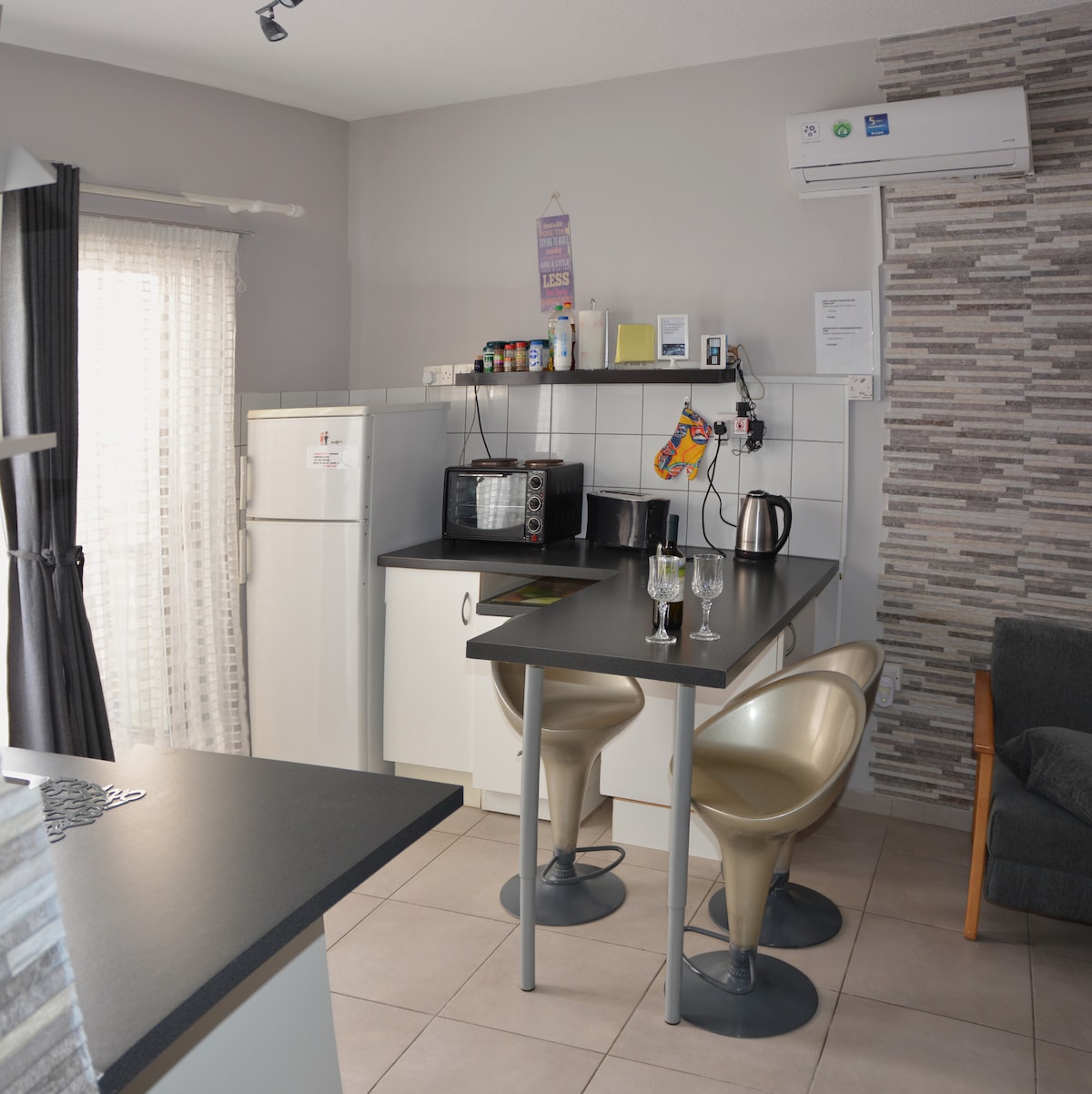 Elegantan, moderan i porodičan studio apartman smešten u srcu Aja Napa . Uživajte u kratkoj šetnji do plaže, čuvenog trga na kojem se mogu naći svi barovi, restorani i zabava, sa jednostavnim pristupom prodavnicama i javnom prevozu . Ovaj čist i prostran studio apartman nudi besplatan Wi-Fi , klima-uređaj, parking i balkon. Dodatni čaj ,kafa i voda po dolasku. Obezbeđeni su čisti peškiri, gel za tuširanje, pegla i fen za kosu. Savršeno mjesto gdje se možete odmoriti, opustiti i napuniti baterije.
