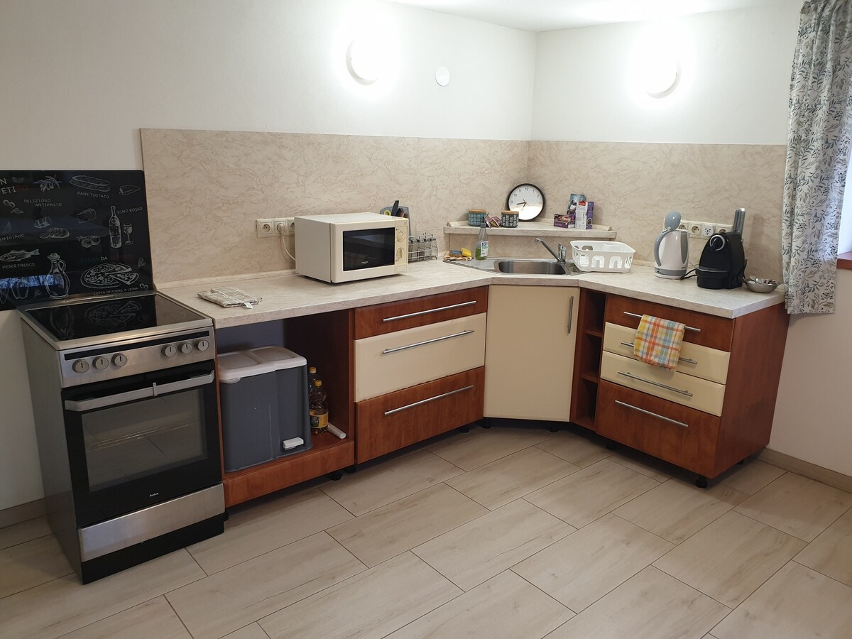 🏡Naš privatni stan u Terčovi nalazi se pored šume, samo nekoliko minuta od poznatih planinarskih staza🚶♂️. Sa terase ćete uživati u predivnom pogledu na Rozsutec,⛰️ a djeca se zasad mogu igrati u velikom dvorištu sa igralištem. Stan je potpuno opremljen, ima sopstveni ulaz, terasu sa roštiljem🍖, besplatan parking 🚗 i brz Wi-Fi. Stan ima privatnu kadu. (tako da ne morate da delite svoju privatnost). 💚 Radujemo se što ćemo vas ugostiti – bilo da planirate porodično putovanje , planinarenje ⛰️ ili samo opuštanje ☕