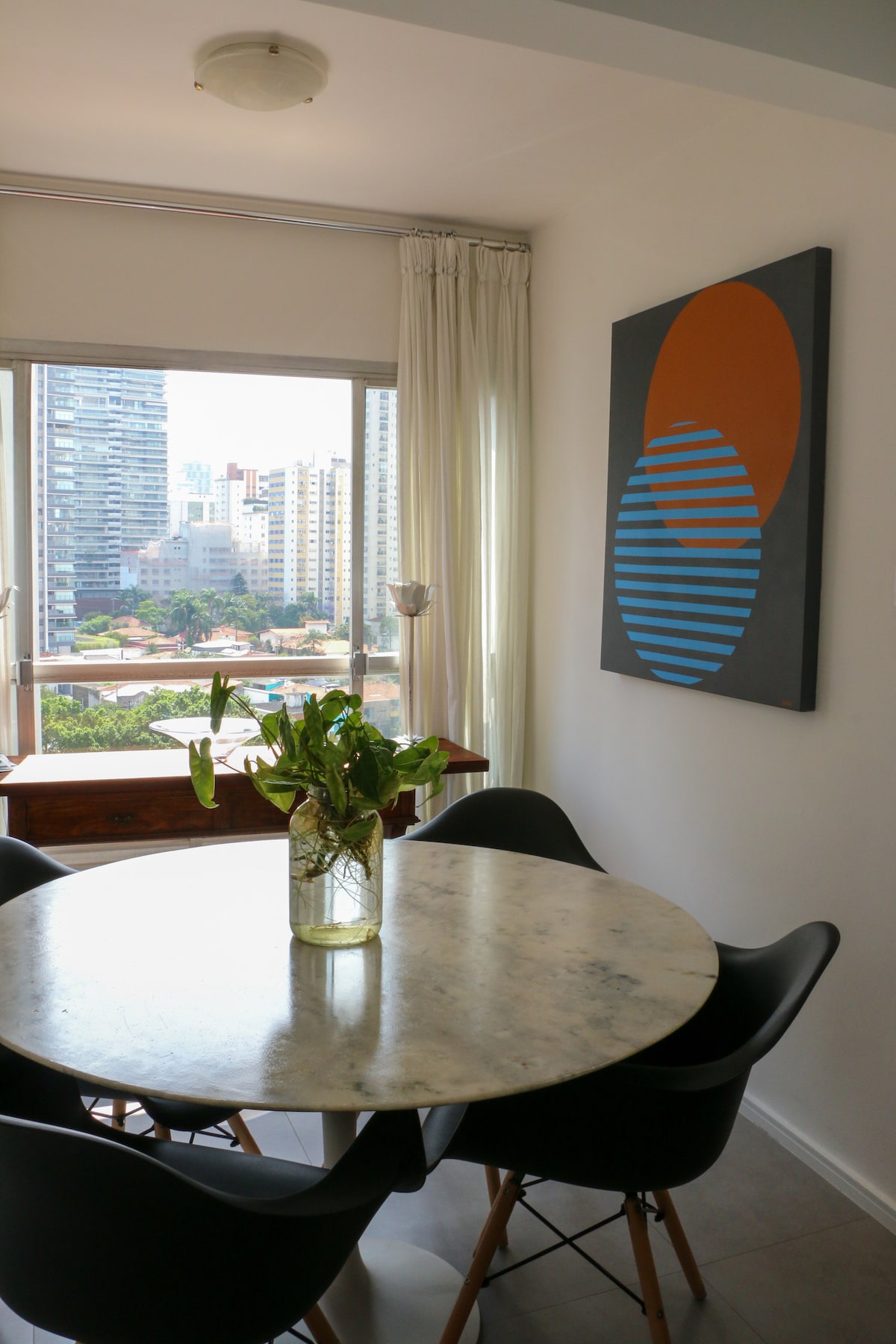 Stylish 50 m² apt. located at Bela Vista, has 24hr doorman. 2 bedrooms (only 1 with AC, and queen bed, the second one is quite small and can be used as an office, fitting a double-sized sofa-bed) and 1 bathroom. With amazing views from every window, it is a great place to work and relax. The private jet-tube at the balcony is a fantastic spot to enjoy the city views. Ideal for couples, professionals or small families looking for comfort, convenience, and one of the best views in the city.