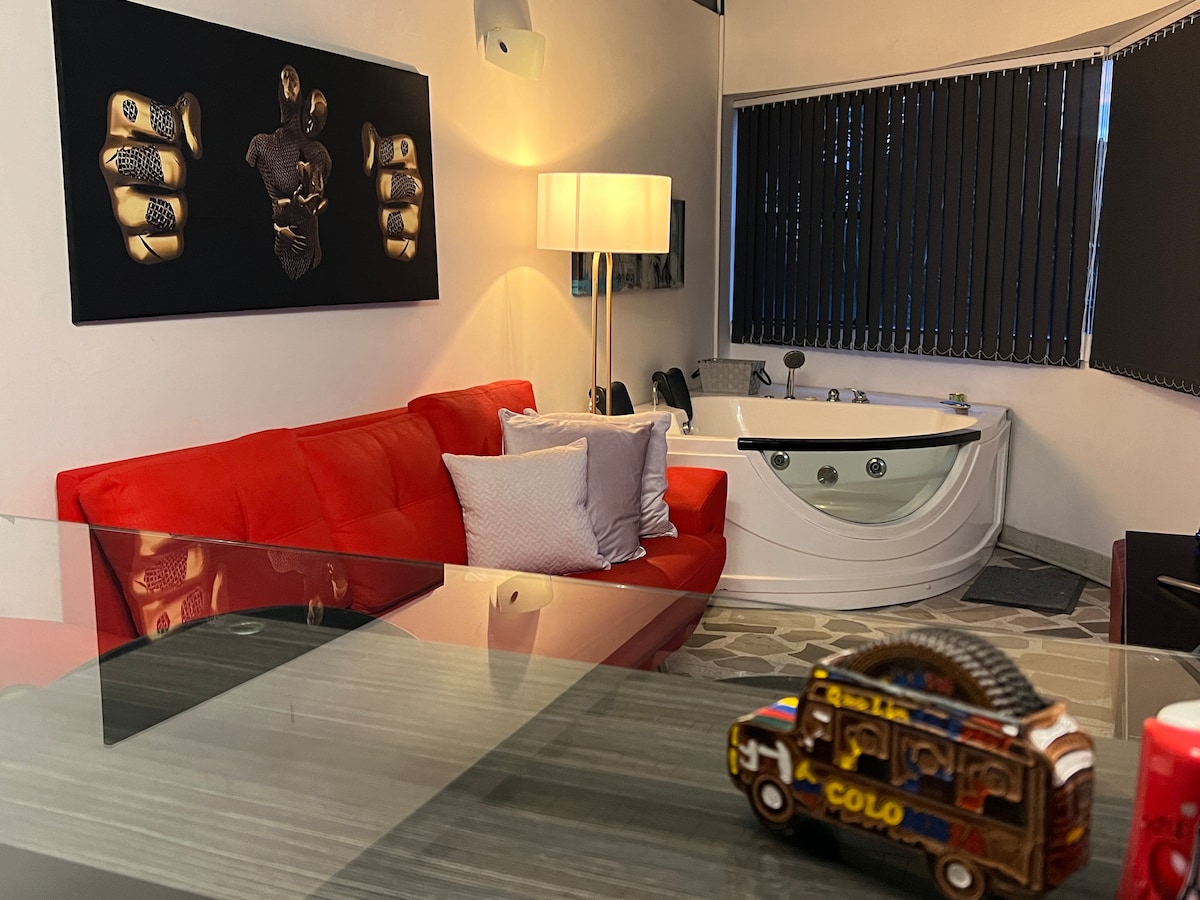 ✨ Uživajte u našem jedinstveno dizajniranom potkrovlju i klima-uređaju ❄️ Opustite se u udobnom krevetu🛏️, potpuno opremljenoj kuhinji 🍳 i ostanite povezani uz brzi Wi-Fi ⚡kupatilo ima toplu vodu 🏢 Zgrada sa 24-časovnim obezbeđenjem, liftom, teretanom na otvorenom 💪 i društvenom terasom sa neverovatnim pogledom 🌇. Jedan blok od tramvaja 🚋 (stanica Bicentenario) i okružen supermarketima, restoranima 🍽️ i prodavnicama 🛍️ Doživite moderno, udobno i autentično iskustvo u Medeljinu!✨