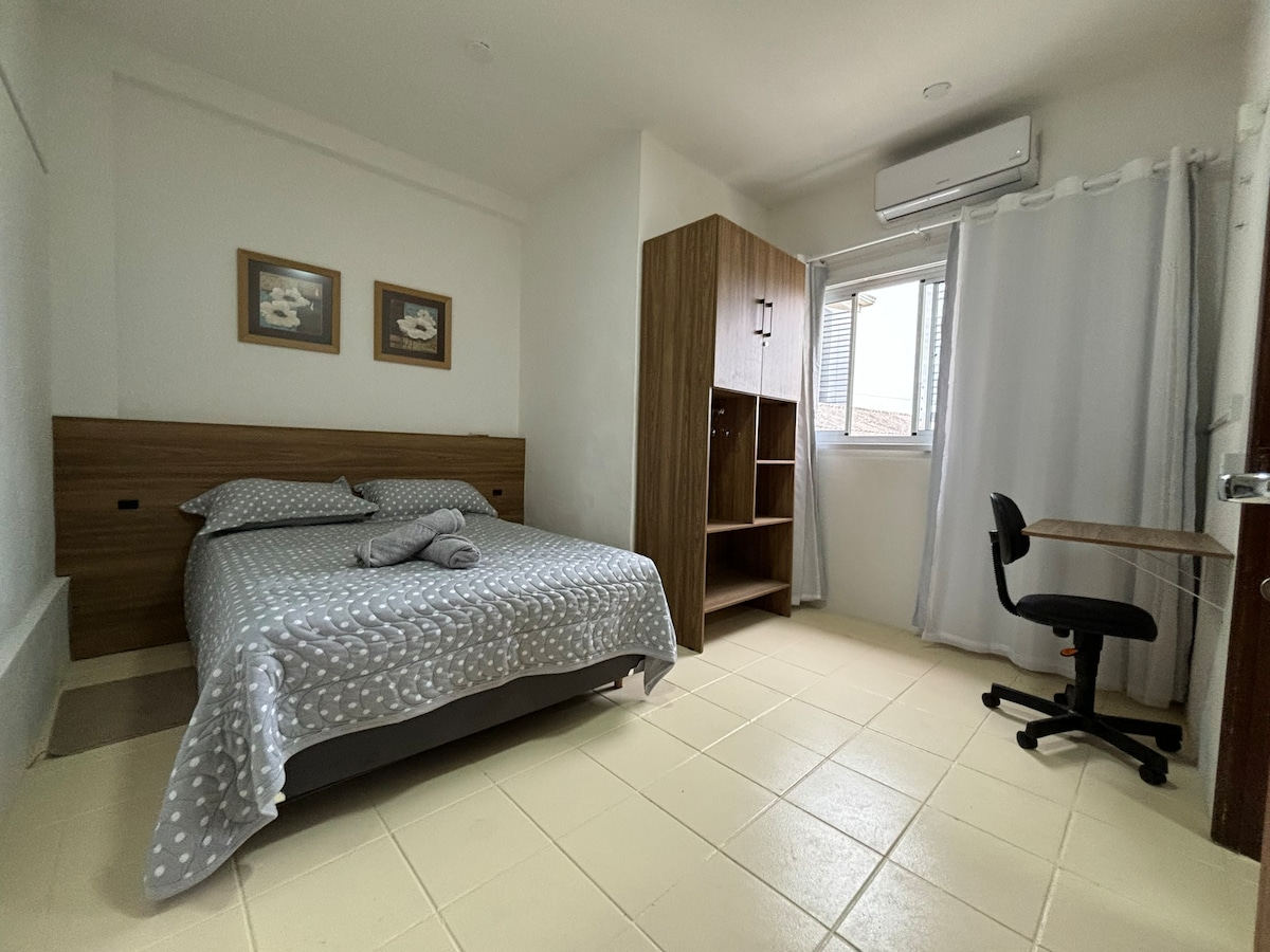 Dobro provetrena i udobna garsonjera, tiha, idealna za rad od kuće, klima-uređaj za grejanje i hlađenje, šetnja i boravak u centralnom regionu Floripa, na putu do najboljih plaža. Kancelarijski sto i stolica, kuhinja, kupatilo. Postoje i drugi zajednički prostori za vežbanje joge (prostor Casa Aflorar), privilegovan pogled na Bejramar i region, okružen autohtonim rastinjem i baštama. Optički internet, friteza, zavese za zamračivanje. Teretana u blizini, biciklističke staze.