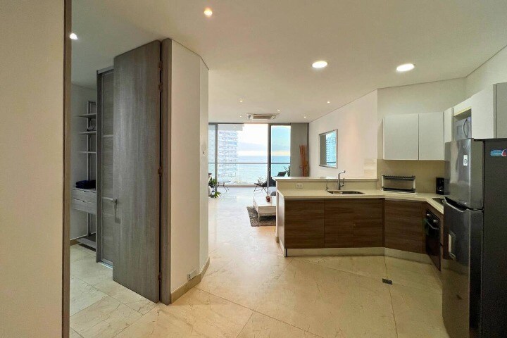 Ekskluzivni novi apartman nalazi se u turističkoj četvrti u marini Santa Marta. Potpuno namješten, nalazi se na 9. spratu, modernog dizajna, balkon. Apartasuite se nalazi u istoj zgradi hotela koji nudi Meriot, a zajedničke prostorije dele se sa hotelom: poluolimpijski bazen sa barom, međunarodni restoran, teretana, spa. Spektakularan pogled na more, klima uređaj. Ima sve što vam treba za odlično iskustvo na najvišem nivou.