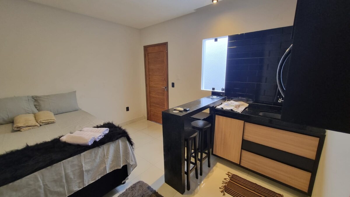 Stan se nalazi u najmodernijem kompleksu grada: Heron Marinho/ Hotel Slavieiro, udaljen je manje od 200 metara od glavnog tržnog centra u gradu i 10 minuta od Narodnog parka, što je prosečna cena Ubera u iznosu od 10,00 R$. Novi stan sa mekom i super udobnom dekoracijom, Kompleks takođe ima moderan i opremljen fitnes centar.