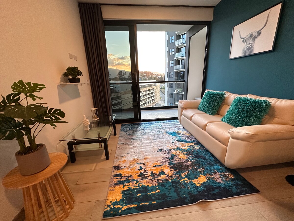 Doživite San Hoze iz modernog apartmana sa panoramskim pogledom na grad u ekskluzivnom kompleksu Núcleo Sabana. Potpuno opremljen Wi-Fi 5G mrežom, pametnim TV-om, kompletnom kuhinjom i privatnim parkingom. Uživajte u vrhunskim sadržajima, uključujući bazen, teretanu, saunu, staze za plivanje, teren za razne sportove, sobu za karaoke i prelepe zelene površine. Nalazi se nekoliko koraka od parka La Sabana, Nacionalnog stadiona i svih restorana. Savršeno za poslovne putnike, parove ili svakoga ko traži udobnost i stil u živopisnoj prestonici Kostarike.