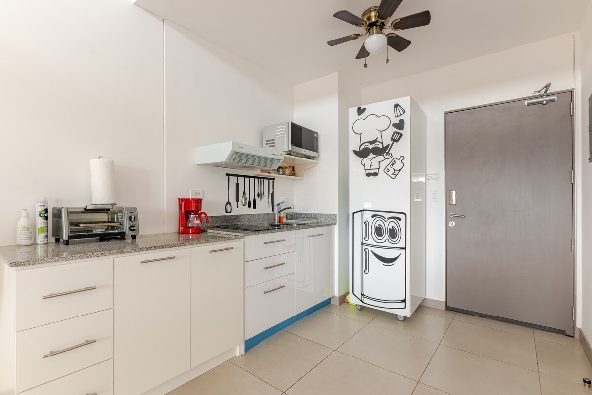 Ovo mjesto je savršeno za istraživanje centralne doline ili za posljednje noći prije odlaska na aerodrom. Ovaj centralni i neobičan stan nalazi se u ekskluzivnom području Escazú, u blizini centra San Hozea, aerodroma Huan Santamarija i drugih zanimljivih mjesta. Uživajte u koncertu, sportskom događaju, kupovini u najboljim prodavnicama ili istražite turističke atrakcije samo nekoliko minuta od vašeg boravka ili se samo opustite istražujući veliku raznolikost okolnih restorana i barova.