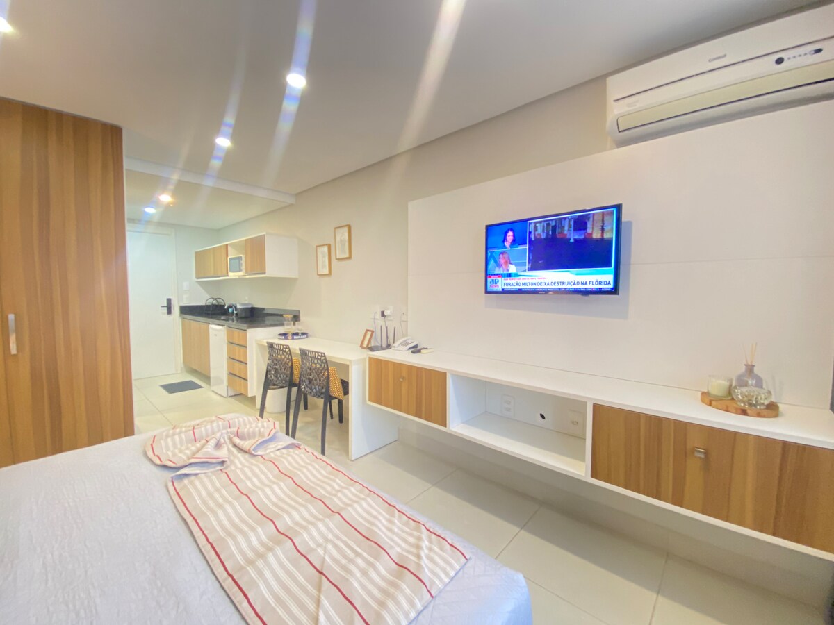 Apartman sa klima-uređajem, tuš kabinom sa centralnim grejanjem, mini kuhinjom, pogledom na rezervaciju. Besplatan Wi-Fi, pametni TV, kablovska i itnernet, Youtube itd. Prostor ne treba detektor. Svi uređaji su električni (uključujući bojlere) i nema pričvršćenog kamina ili garaže. O Flat - Pau Brasil ima besplatan parking, recepciju 0-24. Grijani i negrijani spoljni bazeni u sklopu objekta, sauna, teretana, spa centar, bar, restoran itd.