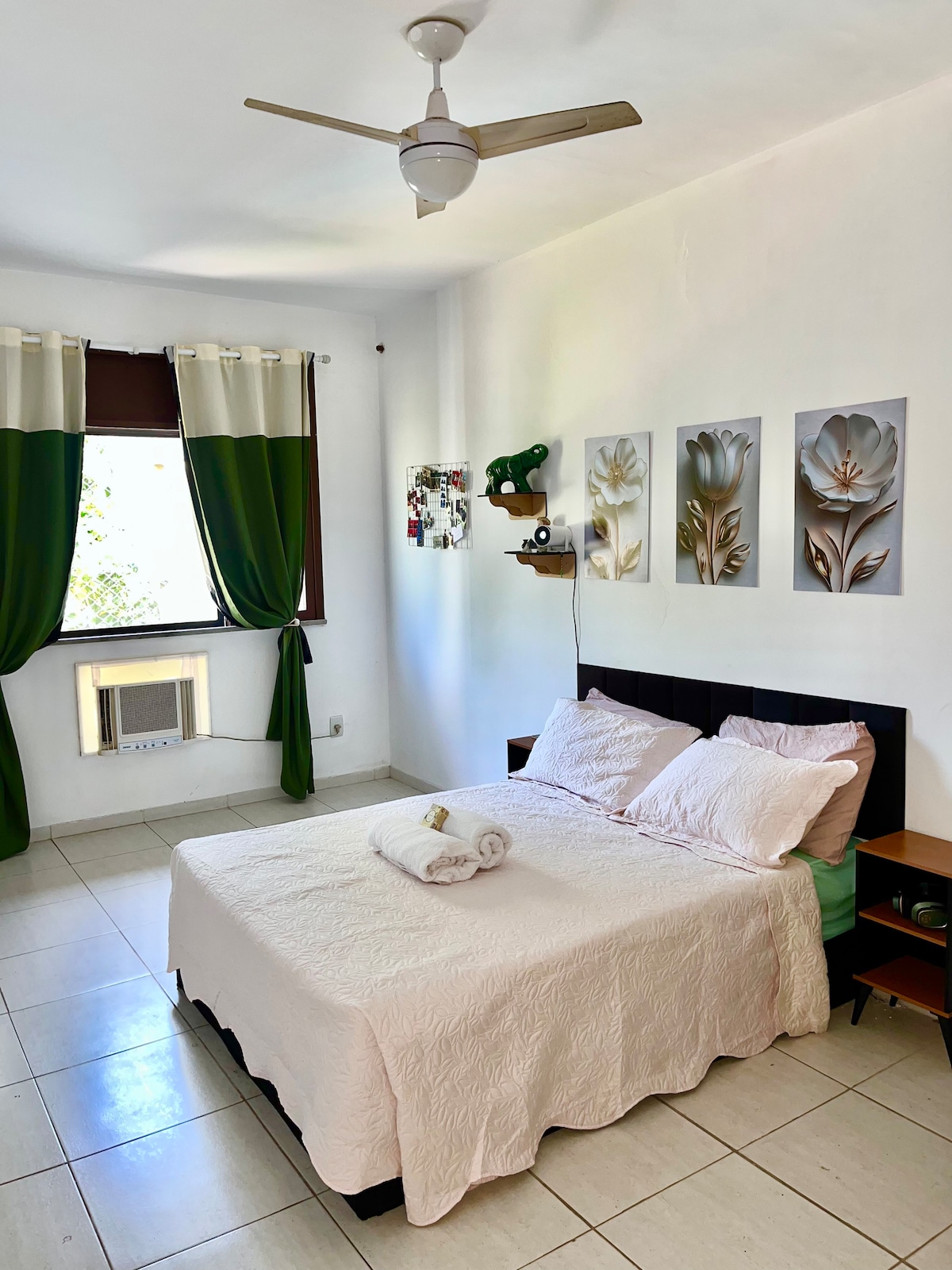 Apto moderno e acolhedor para até 5 hóspedes! São 69m² de conforto e praticidade: 2 quartos (1 suíte c/ cama queen + 1 quarto c/ bicama e espaço home office), sala com sofá retrátil, cozinha completa e varanda com pôr do sol encantador 🌅. Wi-Fi rápido, TV Smart, enxoval completo e eletros modernos (airfryer e lava e seca). Condomínio clube com piscina, sauna, cinema, restaurante e quadras. Próximo ao Riocentro, Parque Olímpico e Rock in Rio! 🎶