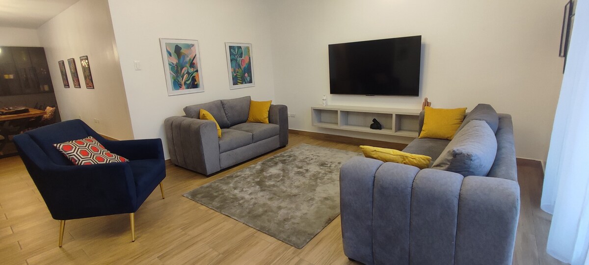 ✅ Prekrasan apartman na 8. spratu zgrade River Front #1, sa spektakularnim balkonom i panoramskim pogledom na sektor Puerto Santa Ana. 🛏️ Cama King (3 sedišta) sa posteljinom od 100% pamuka i dvosedom na razvlačenje, idealno za uživanje u paru ili porodici. 🍳 Opremljena kuhinja. Mašina za pranje i sušenje veša u objektu, topla voda, brzi internet, kablovska televizija i podzemni parking. 🏊♂️ Obezbeđenje i pogodnosti 24/7: bazen, đakuzi, sauna i teretana. ✨ 10 minuta od aerodroma.