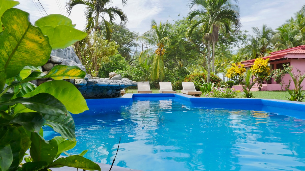 Otkrijte Casa Pelícano, butik utočište u džungli u blizini plaže, samo 5' od Plaja Bejuko i kratku panoramsku vožnju do Plajas Hako, Hermosa, Manuel Antonio i Marina Pez Vela u Keposu. Okružen bujnom prirodom, majmunima, makaima i leptirima, ovaj udoban smještaj ima klima-uređaj, brzi Wi-Fi, kompletnu kuhinju i vešeraj, 1BR sa Smart TV-om, kauč na razvlačenje, 2 terase, roštilj/ognjište, đakuzi/spa i bezbjedan parking. Idealno za surfovanje, opuštanje ili rad na daljinu. Miran, privatni raj — vaš savršen odmor u Kostariki.