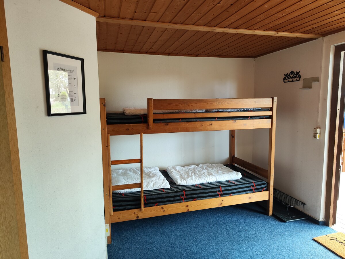 This spacious holiday home is our highlight for family holidays in Saxon Switzerland, as it is located right next to our pool and playground. The ground floor features a living/dining area with a fully equipped kitchen, a cozy seating area, and a large dining table. The master bedroom and a modern bathroom with sustainable, organic toiletries are located in separate rooms. A staircase leads to the children's paradise with four single beds and a large play rug.
