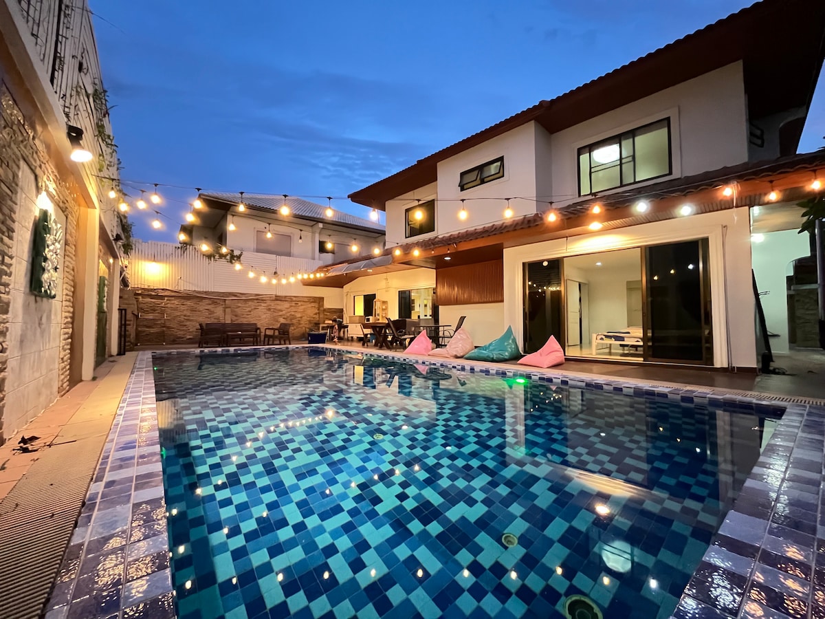Samo 50 metara od plaže Jomtien, ova udobna luksuzna vila s bazenom savršena je za porodice ili grupe do 10 gostiju. Uživajte u 5 prostranih spavaćih soba (4 bračna kreveta, 1 bračni krevet), 6 kupatila, potpuno opremljenoj kuhinji i udobnom dnevnom boravku. Opustite se uz privatni bazen, roštilj i sto za fudbal. Bez obzira na to da li kuvate, izležavate se ili se igrate, ova lijepo uređena vila nudi sve što vam je potrebno za zabavan i opuštajući odmor uz plažu.