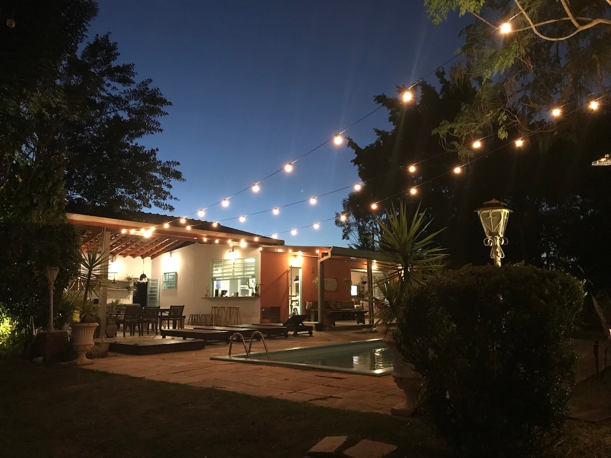 Smeštaj visokog standarda u evropskom stilu sa pet apartmana i dve spavaće sobe, sve sa krevetima, posteljinom i peškirima za 23 osobe. Mogućnost dodatne male kuće sa dve spavaće sobe, dnevnim boravkom, kuhinjom i kupatilom za još četiri osobe (proverite dodatne troškove) Termički izolovana nekretnina, 700 m2 građevine, nekoliko balkona i dve terase u luksuznom i bezbednom naselju Barão Geraldo, u ruralnom delu Kampinasa Vivo fiber 500Mb i JBL Partybox 320 zvučni sistem