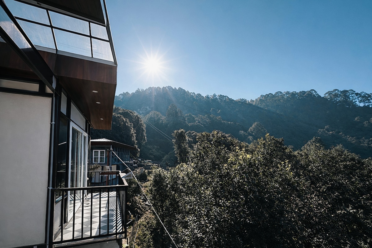 Odmorite se u luksuznoj brvnari s kosim krovom smještenu u amfiteatru netaknutih šuma na 3 hektara poljoprivrednog imanja u podnožju Himalaja. Probudite se uz muzičko pjevanje ptica na gusto šumovitom brdu koje graniči sa objektom, spavajte okupan mjesečinom koji struji kroz veličanstvene dvostruke krovne prozore pod zvjezdanim noćima Ukusno uređeni enterijeri, ogromni životni prostori u zatvorenom prostoru i na otvorenom sa cijelom farmom za istraživanje, kadom za opuštanje i potpunom privatnošću od spoljašnjeg svijeta!